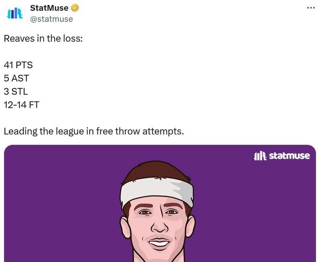 值得一提的是,里夫斯不仅在得分产量上追平SGA,罚球数方面更胜一筹,开赛至今4场比赛,里夫斯一共获得多达51次罚球超越SGA领跑全联盟。