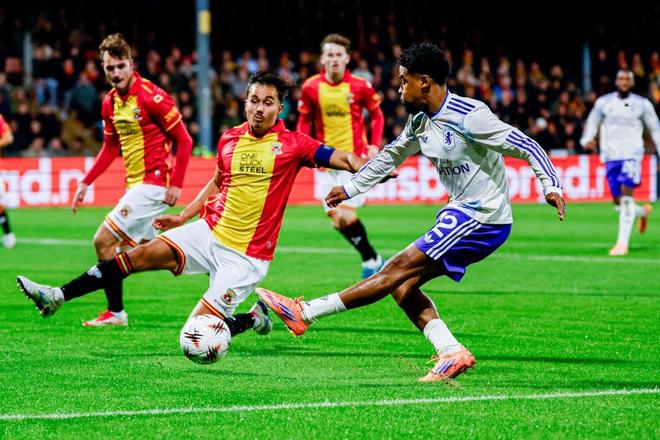 英超劲旅阿斯顿维拉前两轮取得连胜,埃梅里今天率队作客德阿德拉霍斯特体育场对阵荷甲中下游的前进之鹰,开场后阿斯顿维拉反客为主展开猛烈攻势,看来他们今天是势在必得。开场仅3分钟,阿斯顿维拉全线压上,奥纳纳中场送出精妙直塞,曼联旧将桑乔高速插上,超车2名防守球员杀入禁区左侧兜传门前,布瑟出击失误将球扑到右侧后排跟进的盖桑面前,盖桑迎球凌空一撩,皮球滚入球门左下死角,维拉1:0取得梦幻开局。